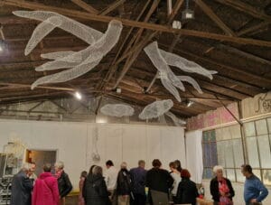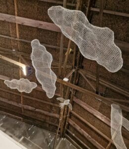 La transparence de ses sculptures en treillis métallique force le spectateur à regarder au-delà de ce qu’il croit voir.