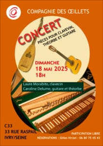 ![]() Programme : Répertoire solo et duo de pièces des XVIII°, XX° et XXI° siècles : Castaldi, Bonilla, Scarlatti, Petrassi, Lacroix, Ponce, Giordani, Boccherini. Clavecin : Laure Morabito Guitare et théorbe : Caroline Delume |