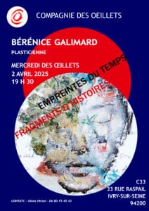 ![]() Mercredi des Œillets le 2 avril Après avoir été costumière de théâtre, Bérénice Galimard construit maintenant ses propres récits avec de beaux collages, montages de fragments et de morceaux d'images qu'elle assemble avec une technique particulière, proche du procédé photographique du transfert d’image sur plaque de verre. Cette artiste plasticienne expose ses créations et partage […] |