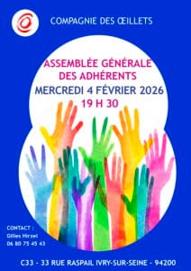 ![]() Exercice annuel récurrent (et obligatoire pour toute association) l'assemblée générale est l'occasion de faire le point sur les activités de l'année passée et de lancer les projets de l'année en cours. La Compagnie des Œillets serait très heureuse de voir ses adhérentes et adhérents lui faire l'honneur de leur présence ! Cette séance de travail […] |