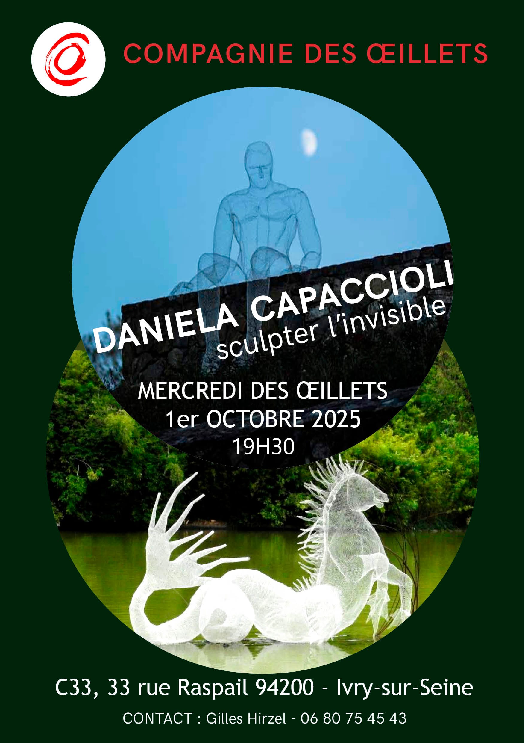 DANIELA CAPACCIOLI Sculptures en grillage Si vous ne connaissez pas déjà la sculptrice Daniela Capaccioli, venez découvrir la beauté et la poésie de son travail au C33, mercredi 1er octobre, à 19 h30. La transparence de ses sculptures en treillis métallique force le spectateur à regarder au-delà de ce qu'il croit voir. Qu'elles prennent la […] |
